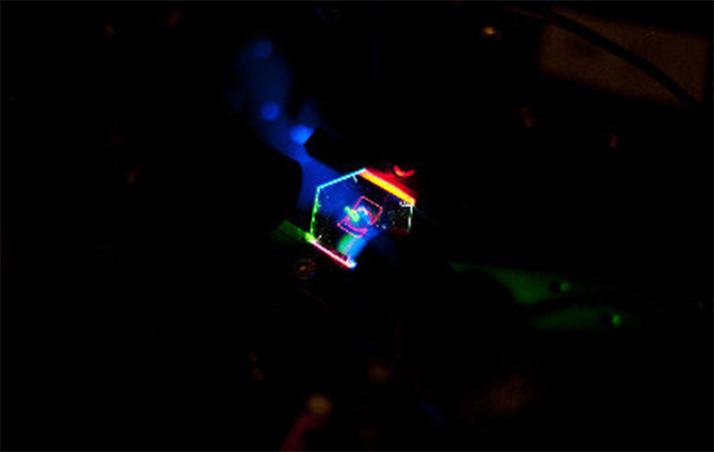 三维立体投影技术通过采用两台投影机同时播放制作影像,而这个过程是靠光的偏振原理来实现的。光的偏振原理使投影机前偏振方向互相垂直,让投影所产生的偏振光的偏振方向也相互垂直。而这种原理设计在眼镜的镜片上,就形成了观众看3D立体电影时佩带的偏光眼镜,边镜片仅能穿过横向的光线,另边镜片仅能穿过纵向的光线。