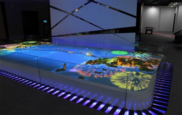 多媒体互动电子沙盘模型制作系统在功能上主要体现在交互控制功能,除了传统流程式沙盘影音演绎功能外,更关键的是参与者可以亲身参与其中,获取自己想知道的知识和内容。这种沙盘形式没有时间场次的概念,可以单人或多人的交互。其特点主要表现在:新颖性、信息传达全面性、生动性、操作简易性、无场次和时间概念、同时接待人数多,特别适合城市规划馆、科技馆、博物馆等人流量比较大的展示场所。